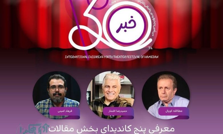 پنج کاندیدای بخش مقالات سیامین جشنواره بینالمللی تئاتر کودک و نوجوان همدان معرفی شدند.